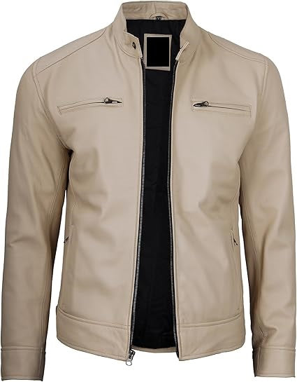 Handmade Beige Leather Men Slim Dress Jacket, Fashion Jacket, Biker Jacket