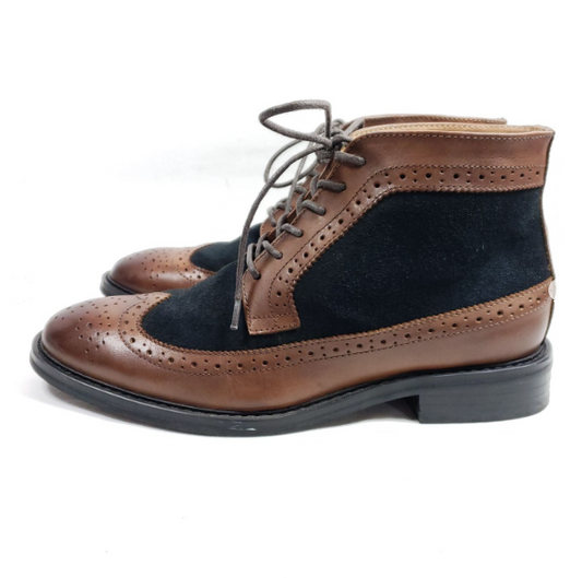 Handmade 2Tone Wingtip Ankle Chukka Leather/Suede Men Business Boot, Dress Boot