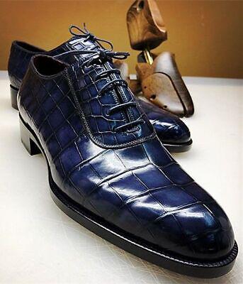 Custom made Blue Croc Print Leather WholeCut Lace Up Top Fashion Shoes
