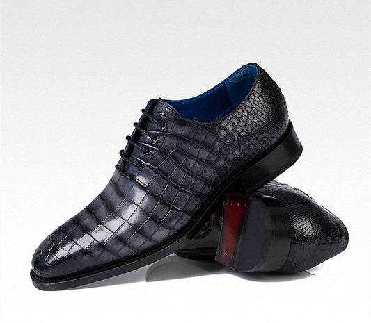 Handmade Men Shaded Gray Crocodile Leather Lace Up Dress Shoes, Office Shoe