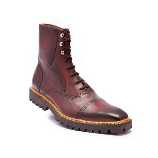 New Handmade High Ankle Dress Shoes, Real Leather Boots burgundy leather boots for men
