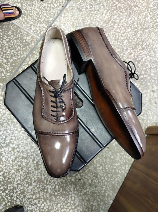 New Handcrafted Premium Quality Light Gray Leather Oxford Lace up Toe cap Dress/Formal Shoes