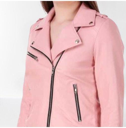 Pink Leather Slim fit Biker Jacket for Women, Street Style Fashion Jackets