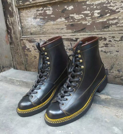 Handmade Men Black Leather High Ankle Lace Up Military Boots, Hiking Boots