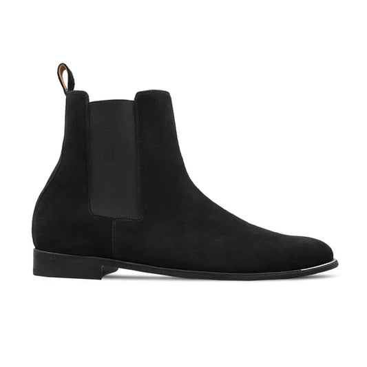 Handmade Men Black Suede Stylish Pull On Ankle Chelsea Office Boot, Party Boot