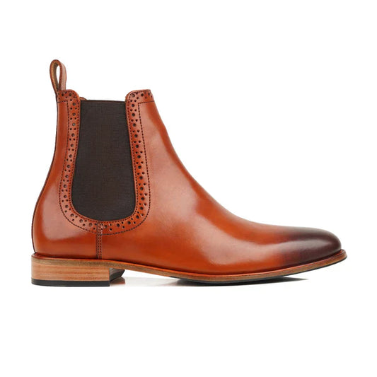 Handmade Men Burnished Tan Leather Stylish Pull On Ankle Chelsea Office Boot