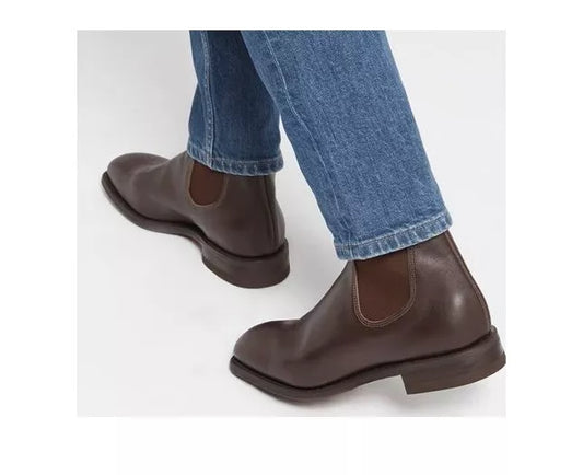 Handmade Men Dark Brown Calf Leather Stylish Pull On Ankle Chelsea Office Boot