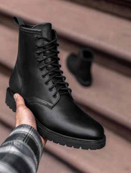 Handmade Men Black Leather High Ankle Lace Up Hiking Boot, Jungle Boots For Mens