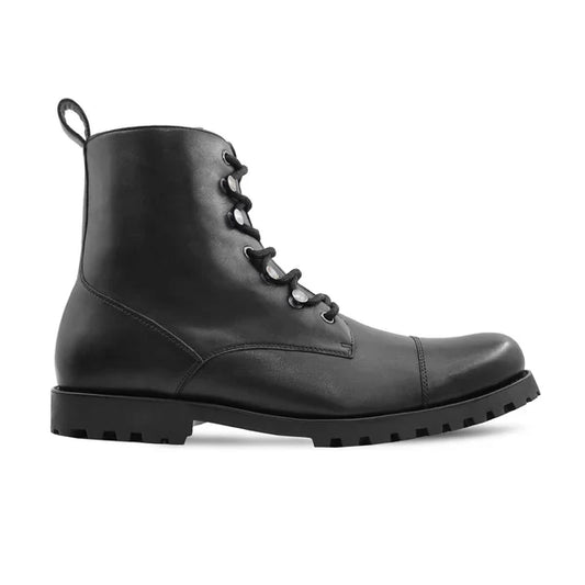 Handmade Men Black Leather High Ankle Lace Up Military Boots, Hiking Boots