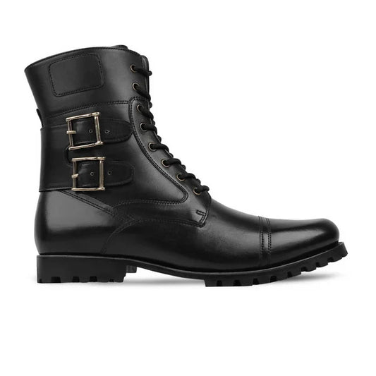 Handmade Men Black Leather High Ankle Strap Lace Up Military Boots, Hiking Boots