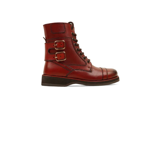 Handmade Men Red Leather High Ankle Strap Lace Up Military Boots, Hiking Boots