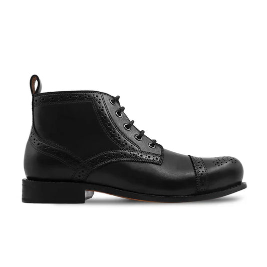 Handmade Men Black Brogue Leather Low Ankle Lace Up Chukka Business Boots