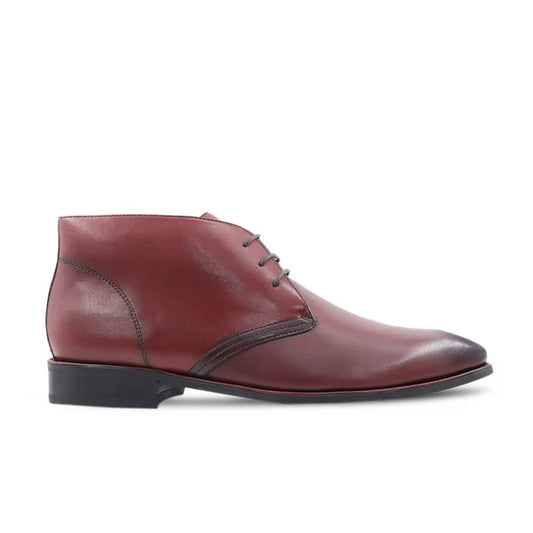 Handmade Men Red Calf Leather Stylish Low Ankle Lace Up Chukka Office Boots
