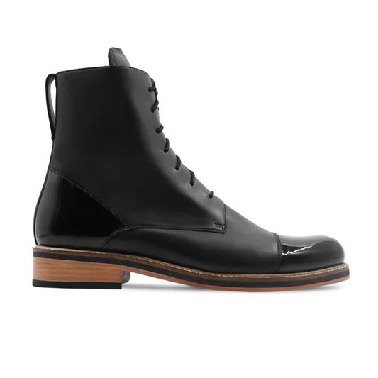Handmade Black Men Leather Men Ankle Lace Up Hiking Boot, Biker Boot