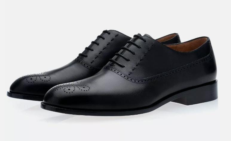 New Black Leather Brogue Formal Handmade Dress Shoes, Oxford Shoes, Office Shoes